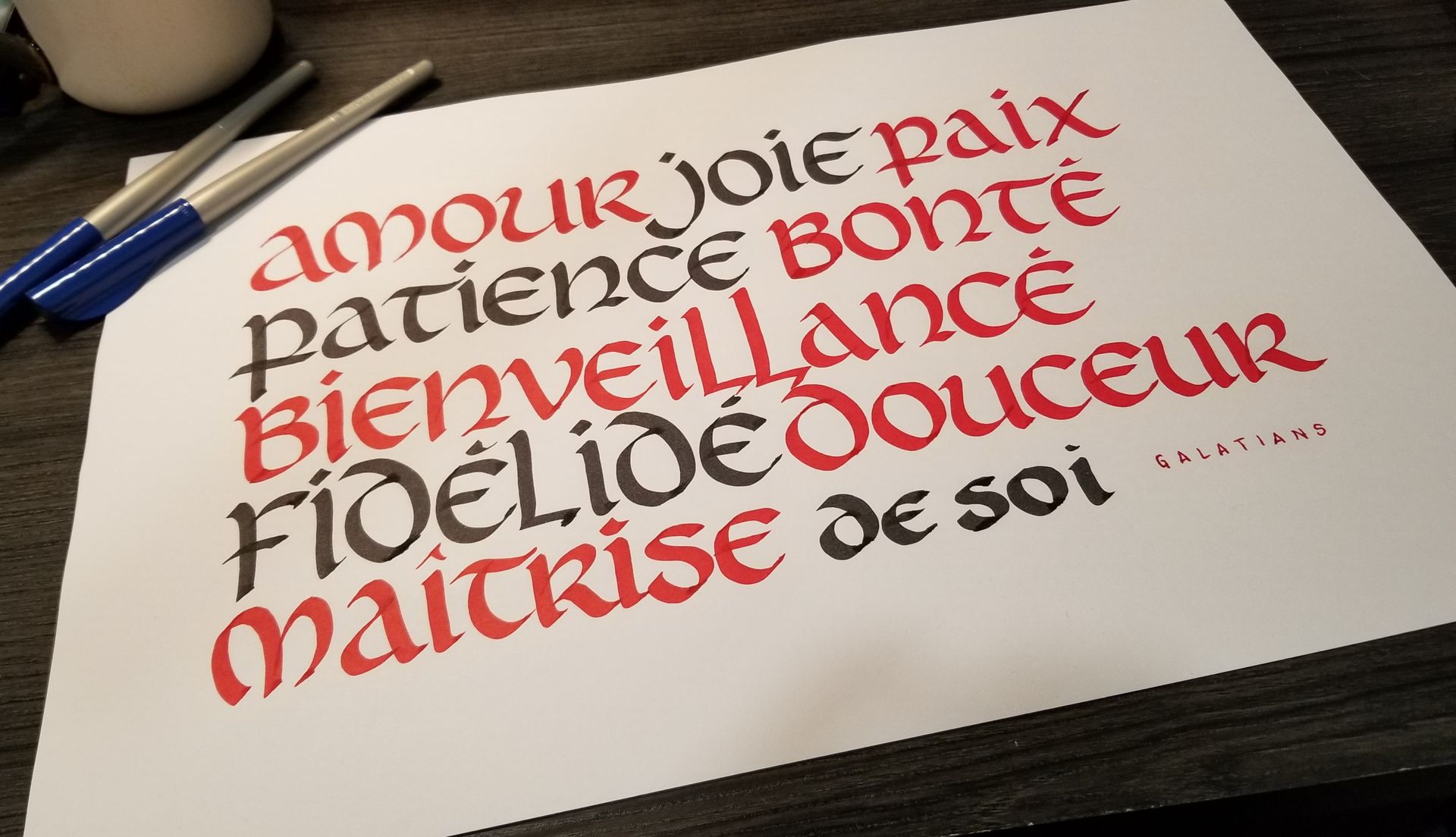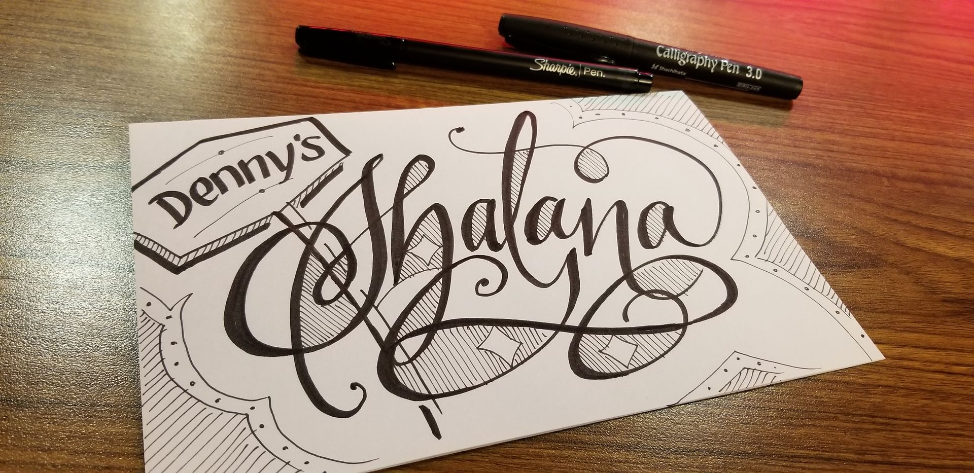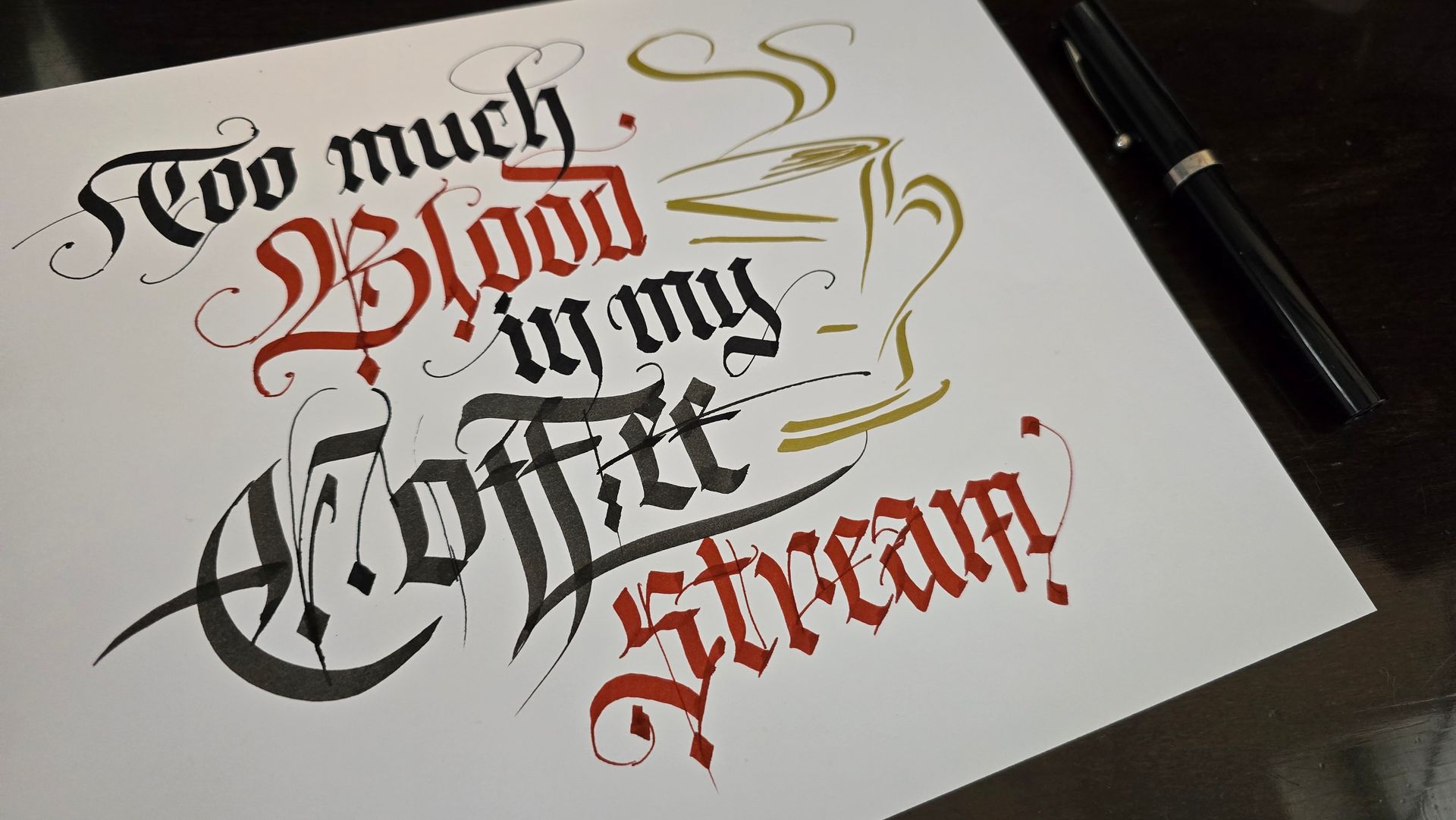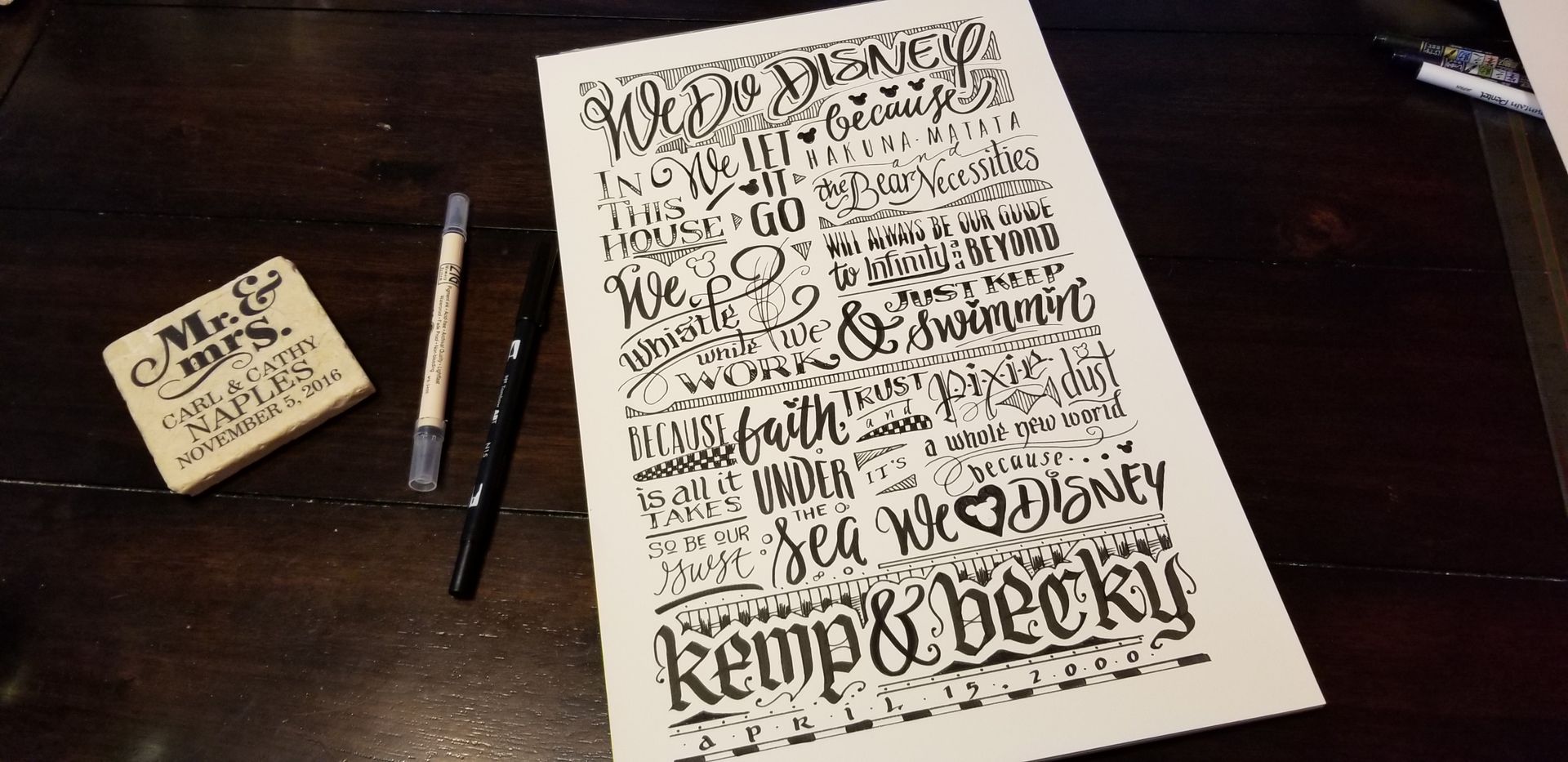 Hand-lettering in various styles using Pentel Plumix, Sheaffer, Pilot Parallels and Fudenosoke felt pens