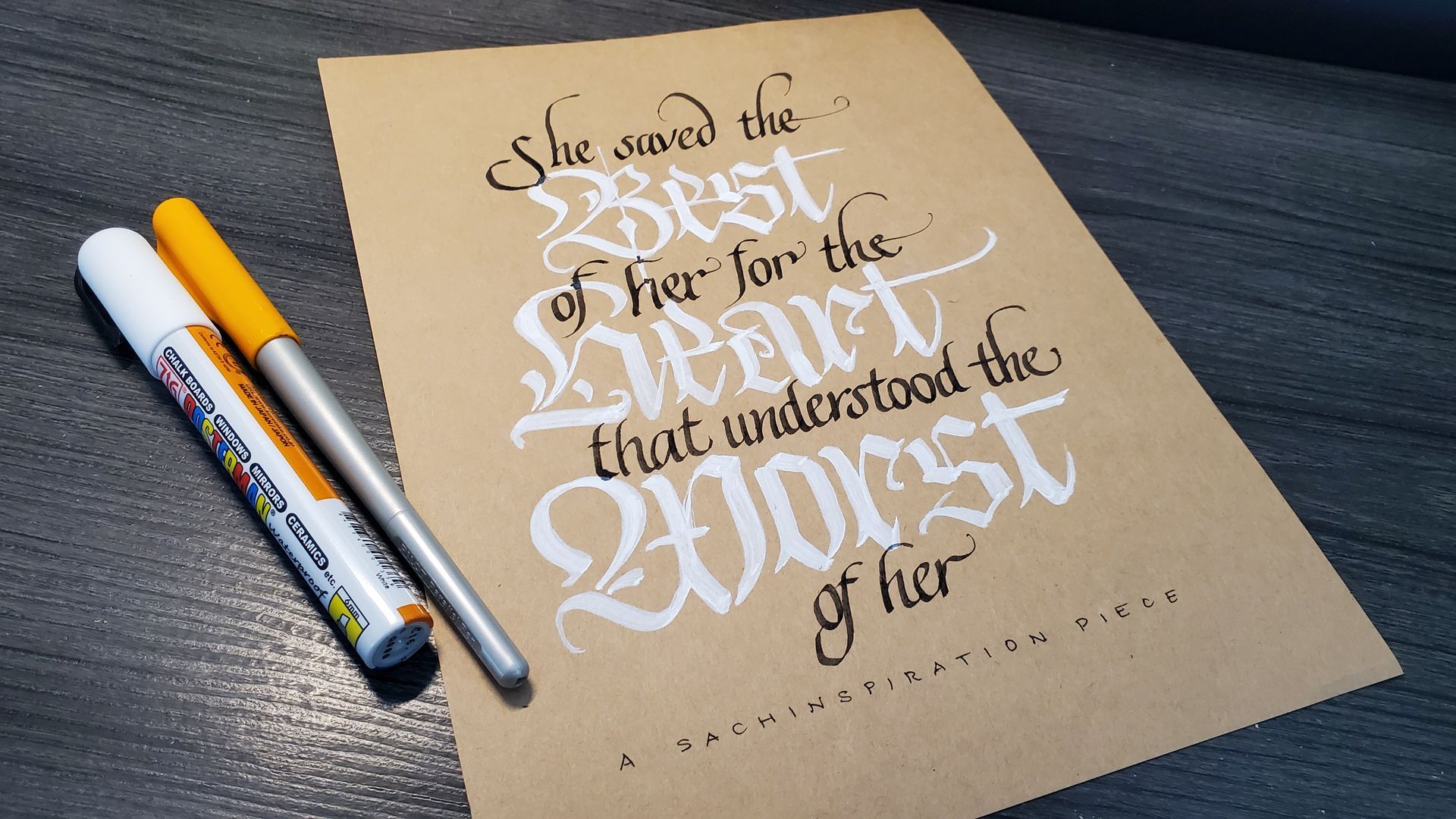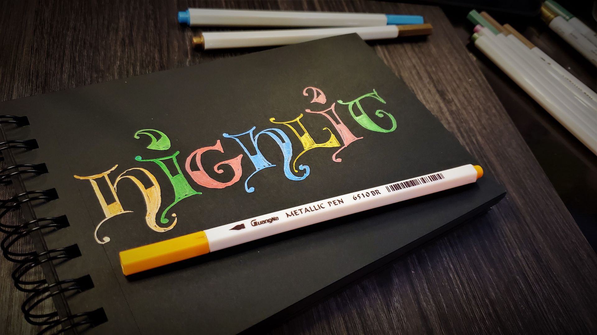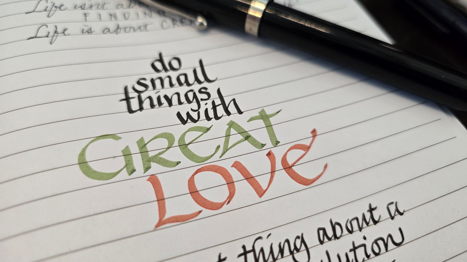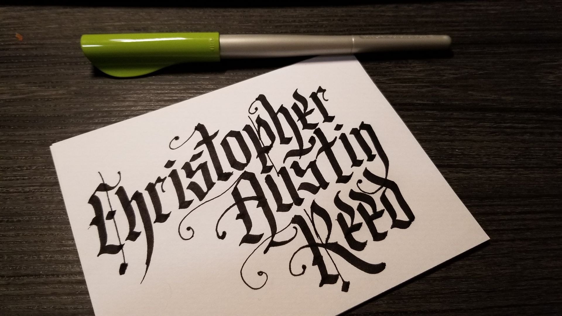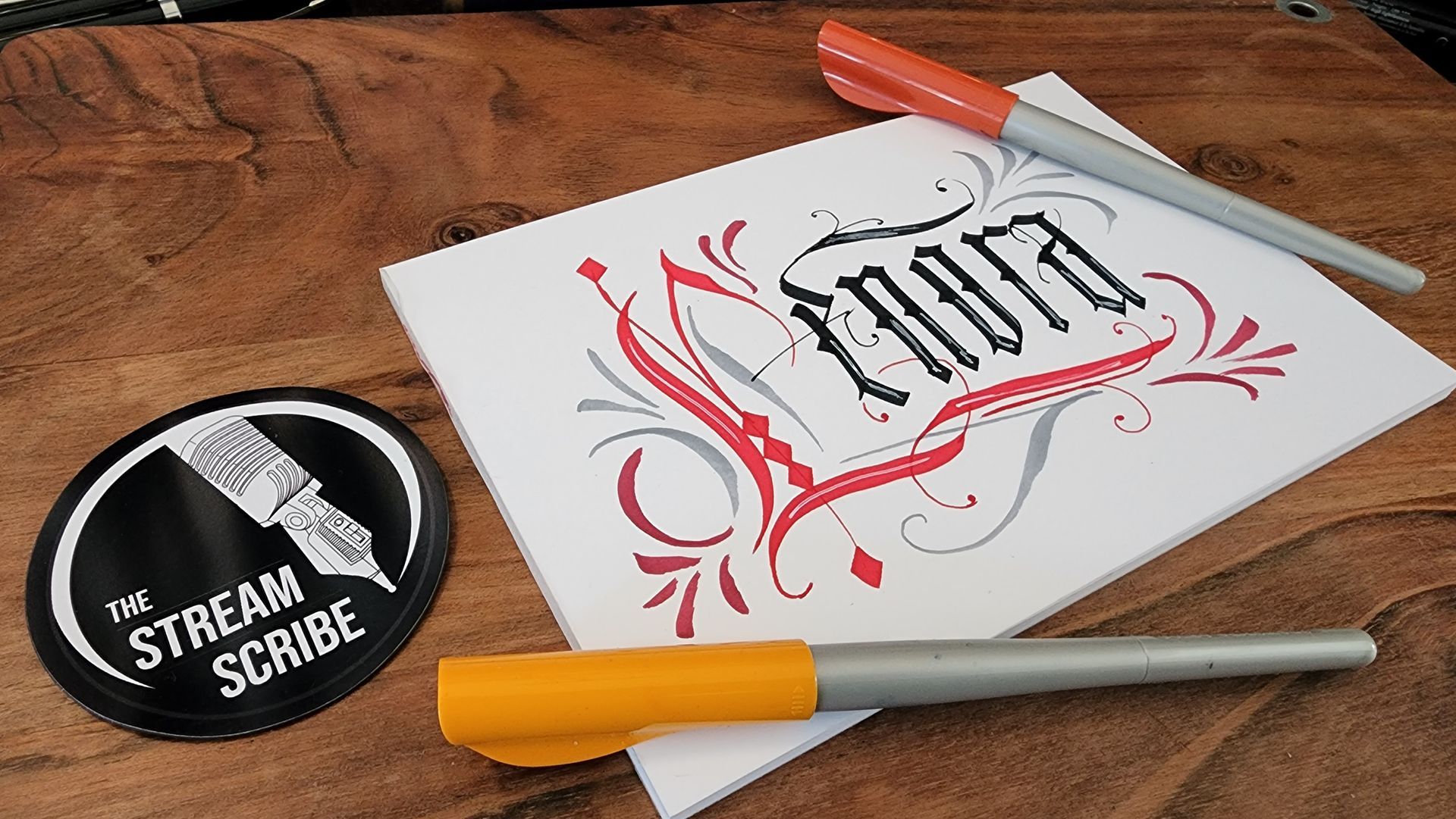 Hand-lettering in various styles using Pentel Plumix, Sheaffer, Pilot Parallels and Fudenosoke felt pens